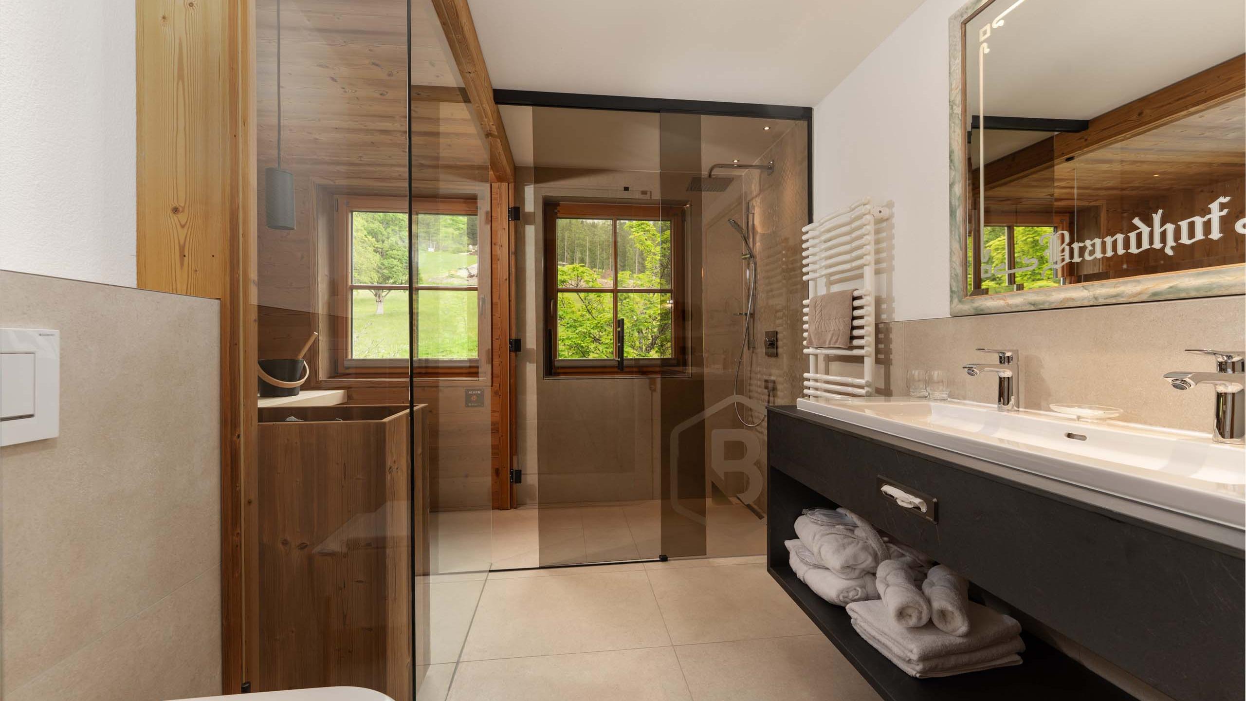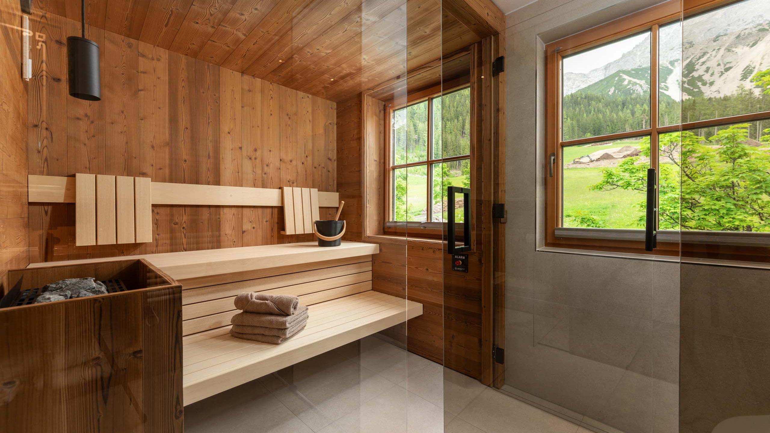 - 2 bathrooms, 1 with private sauna and, both with hairdryer and cosmetic mirror